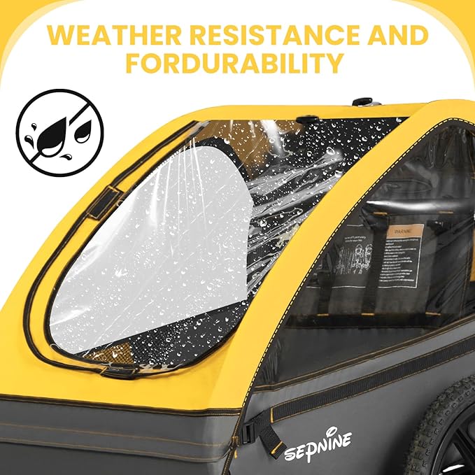 - Safety Guarantee:Our child self-trailers are fitted with high quality reflectors and safety signs with additional reflective strips on both sides for maximum visibility and protection. A plastic tarpaulin on the front protects against the elements and a coloured plastic tarpaulin shields from the sun. The sheeting also keeps bugs out while providing good ventilation and fresh air