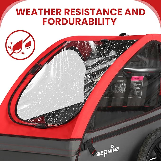 - Large Storage Compartment: The bicycle trailer for kids has a large pcket at the back, providing enough space for toys, bottles, and snacks and anything else you need for a day outside