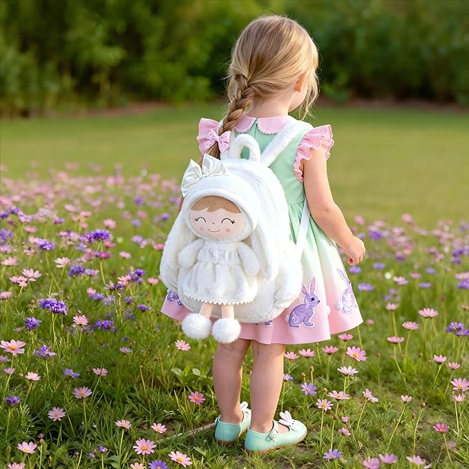 - 🐇This soft white long-eared bunny backpack is not just a stylish accessory, but also a comforting companion for girls aged 2-8, accompanying them through every school day and extracurricular activity. Whether in preschool, kindergarten, or elementary school, this backpack provides both practical functionality and style, ensuring they have a trusted companion in every setting.