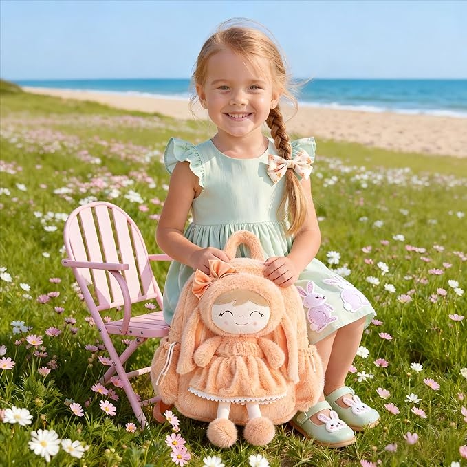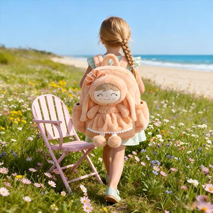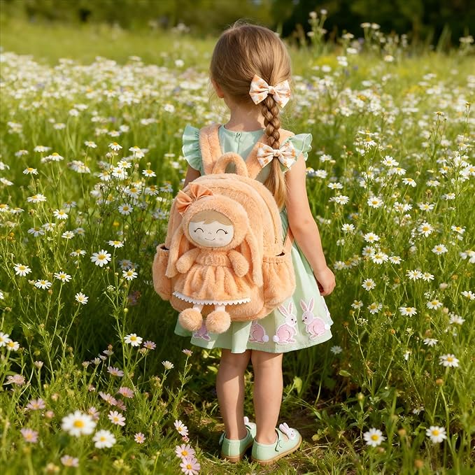 - 🐇A Orange Bunny Backpack Perfect for Multiple School Settings, Warming a Child’s Day This soft long-eared bunny backpack is not just a stylish accessory, but also a comforting companion for girls aged 2+, accompanying them through every school day and extracurricular activity. Whether in preschool, kindergarten, or elementary school, this detachable bunny doll backpack provides both practical functionality and style, ensuring they have a trusted companion in every setting.