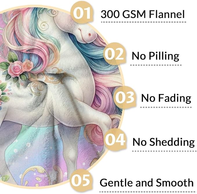 - Soft Flannel Material: Our unicorn blanket is carefully crafted with premium flannel, you can enjoy its fluffy softness. Plus, this blanket is extremely durable, warm and lightweight, making it your ideal companion for all seasons