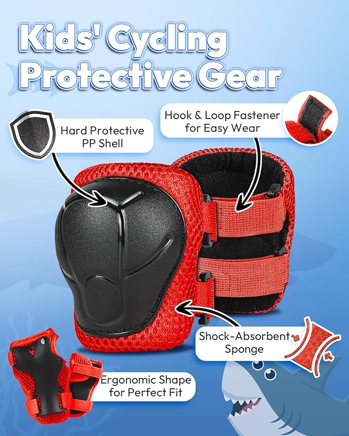 - Lightweight & Safe: Made with a high-strength PC shell and filled with high-density EPS foam, our bike helmet for kids 3-5-8 has excellent impact resistance and is very light to wear. The elbow, wrist and knee pads fit the curves of your child's elbow and knee joints, protecting them from scrapes and bruises.