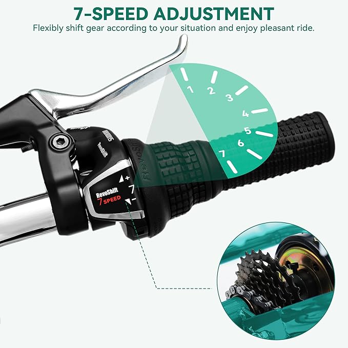 - 7-Speed Cycling: Our 24 & 26 inch 3 wheel bikes offer a 7-speed gear system to match any terrain; You can easily adjust speed and resistance to glide through scenic parks or bustling city streets with ease, enjoying the optimal combination of stability, control, and comfort