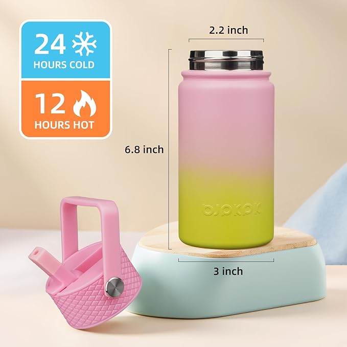 - VACUUM INSULATION WATER BOTTLE: BJPKPK insulated water bottle with straw lid is double-walled and vacuum sealed, which offers a never-ending chill for your favorite drinks - keeping them ice-cold for 24 hours and steaming-hot for 12 hours - so you can enjoy them at the perfect temperature for longer