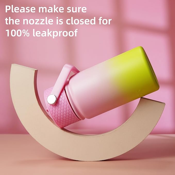 - LEAK PROOF & PORTABLE: Sturdy handle and flip-up straw lid are suitable for you to carry and use. With a leak-proof silicone loop inside the straw lid, it prevents splashing and dripping. Please make sure the nozzle is in the closed position for 100% leakproof