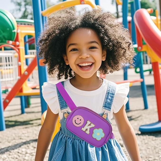 Fanny Pack For Girls Purple Kid Crossbody Bag Chenille K Letter Preppy Belt Bag, Christmas Birthday Graduation Gifts For Girl Teen Daughter Sister, Personalized Nylon Fanny Packs