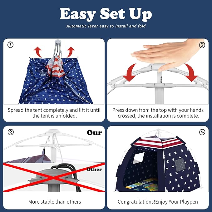 - [POP UP TENT FOR KIDS]:Quick pop-up and take down makes it easy for parents to quickly provide play space for their children