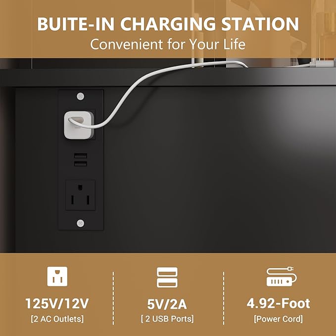 - 【INSTALL & AFTER-SALES】Vanity desk with charging station packaging comes with detailed instructions, all required components have assembly number labels and all components are arranged as expected, making the process efficient, hassle-free and easy to assemble .Take makeup vanity the about 1 hours to complete with 2 people. We have professional online customer service and telephone service. If you have any questions, please contact us directly and we will solve the problem for you.
