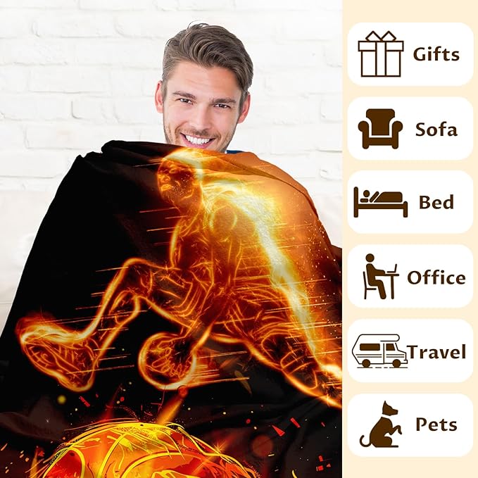 Basketball Blanket for Boys, Kids Blanket, Cool 60 x 50 Inches Lightweight Throw Blanket for Basketball Lovers, Warm Cozy Throw Blanket for Living Room, Bed, Sofa, Office