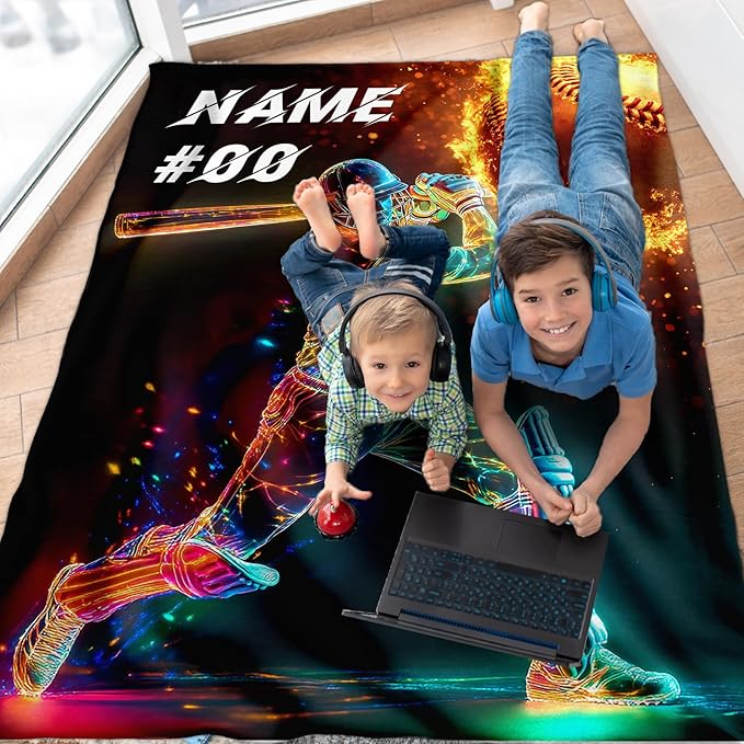Personalized Blankets for Kids 2-5, Cool 40 x 30 Inches Soft Fuzzy Blanket for Boys, Baseball Lovers, Cozy Warm Flannel Throw Blanket for Sofa Room Decor, Camping, Travel, Chair
