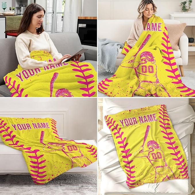 Personalized Softball Gifts for Girls - 30x40 Inches Softball Throw Blankets for Kids - Yellow Cool Lightweight Soft Blankets for Sofa, Lap & Office