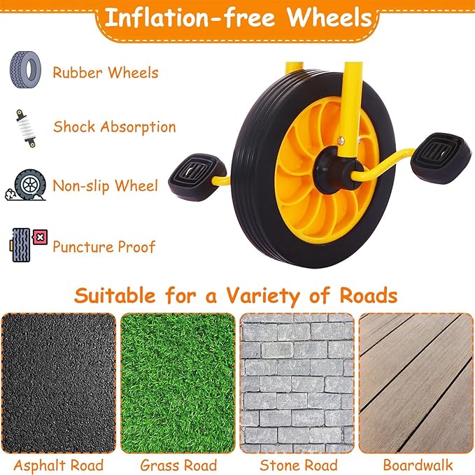- HARD-WEARING, AIRLESS TIRES: This preschool kids trike features non-slip, shock-absorbing rubber tires with a fully enclosed large wheel design to prevent pinching children's feet. The front big wheel significantly enhances the stability of the outdoor kids tandem trike during steering maneuvers