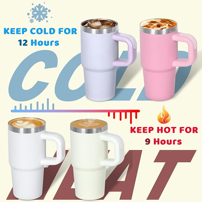 - GREAT INSULATION: The 14 oz kids tumbler with handle is made of 304 food grade stainless steel. With double wall vacuum insulation it can keep your kids' drinks cold for 12 hours and hot for 9 hours.