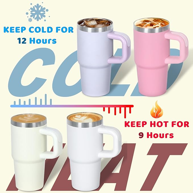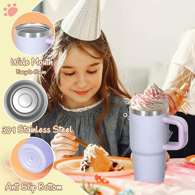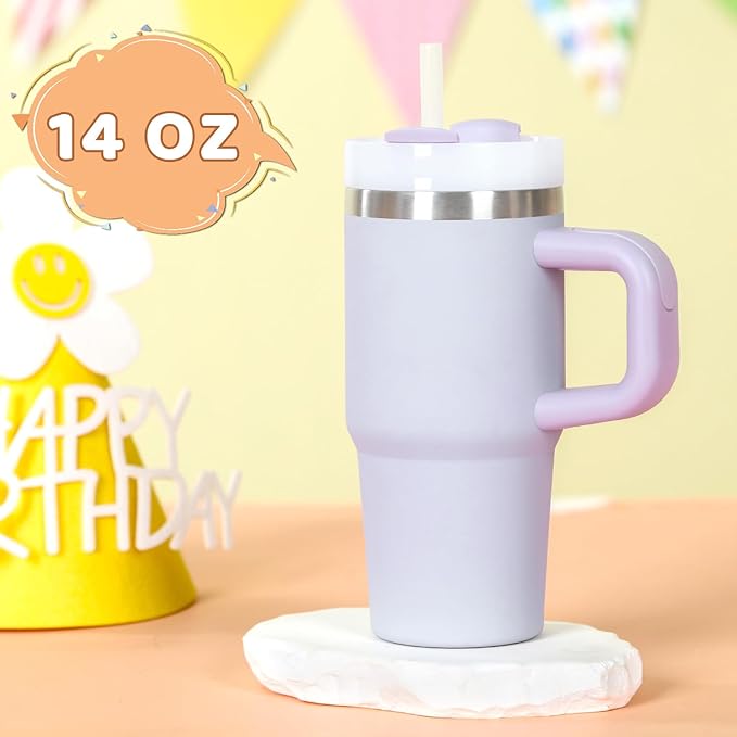 - GREAT INSULATION: The 14 oz kids tumbler with handle is made of 304 food grade stainless steel. With double wall vacuum insulation it can keep your kids' drinks cold for 12 hours and hot for 9 hours.