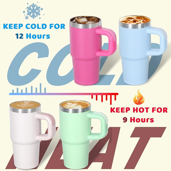 - GREAT INSULATION: The 14 oz kids tumbler with handle is made of 304 food grade stainless steel. With double wall vacuum insulation it can keep your kids' drinks cold for 12 hours and hot for 9 hours.
