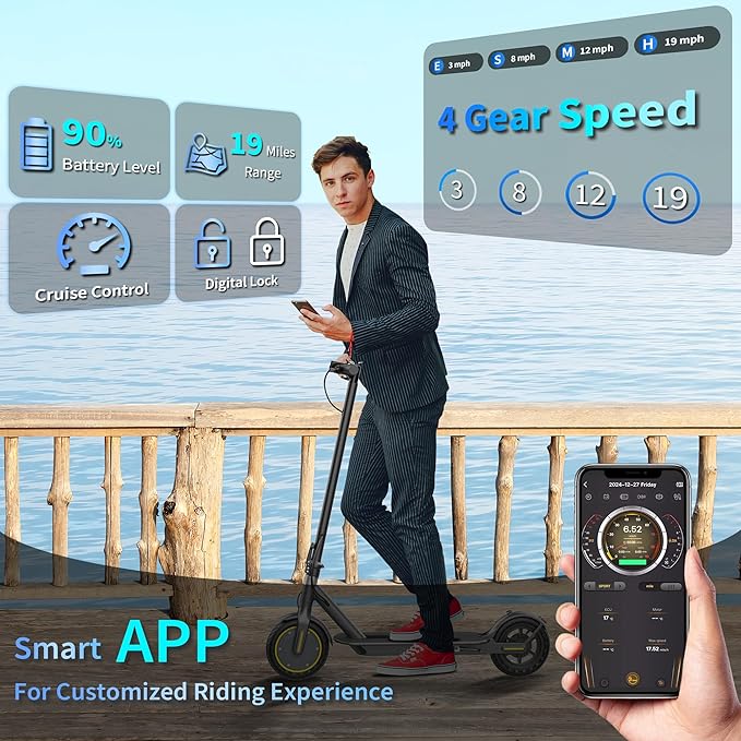- Special Feature : Removable Seat Height Adjustable, Sitting Scooter for Adults with Phone Holder, 350W Motor, 8.5" Solid Tires, 3 Speed Modes, Cruise Control, 19MPH, 21 Miles Long Range Portable, APP Control, Dual Braking System, E-Lock Removable Seat Height Adjustable, Sitting Scooter for Adults with Phone Holder, 350W Motor, 8.5" Solid Tires, 3 Speed Modes, Cruise Control, 19MPH, 21 Miles Long Rang… See more