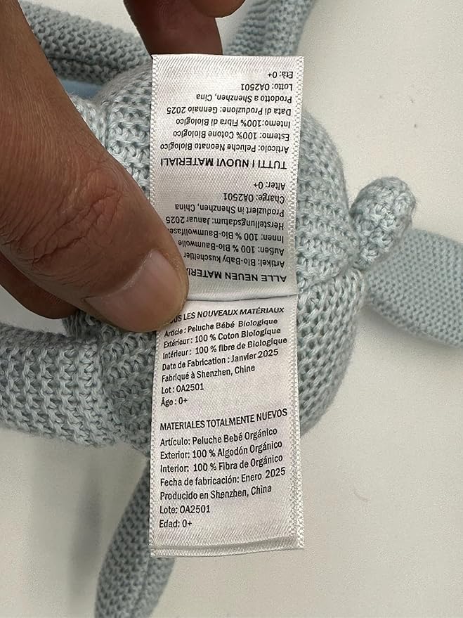 100% Organic Cotton Baby Toys Blue Bunny Rabbit Stuffed Animals for Newborn 7.1"