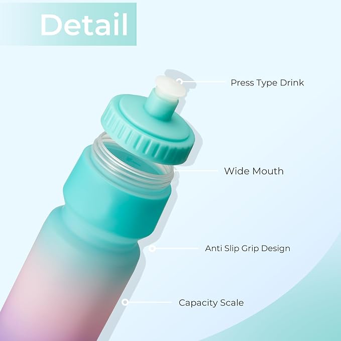 - Comfortable Design: Our Squeeze water bottle features a convenient leakproof pull-top lid which secure and a lot less hassle to open and close. the concave inside of the bottle fits your hand snugly. Squeeze the bottle with one hand to drink water easily and fast, the large water output ensures a 360 watertight experience.