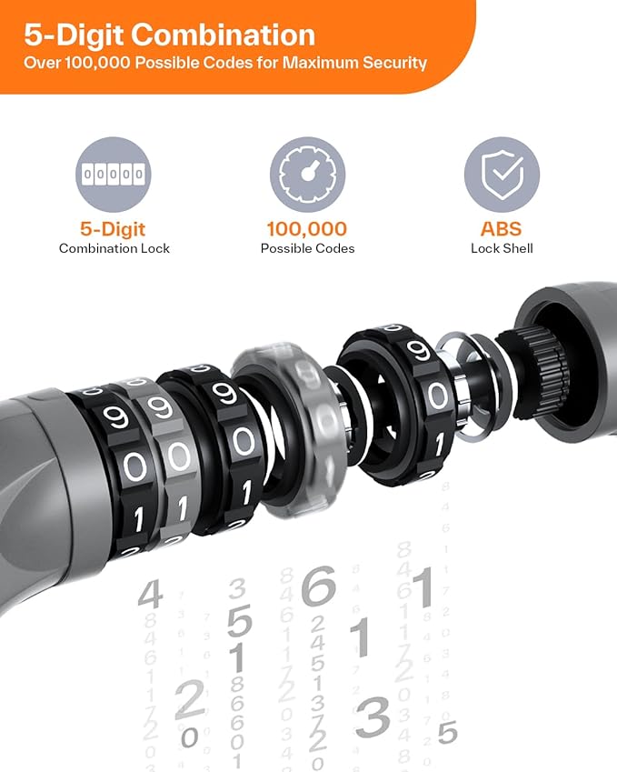 - High Security & Keyless Design: Say goodbye to the hassle of carrying keys and hello to keyless convenience. The advanced 5-digit combination lock offers unparalleled protection, with up to 100,000 possible combinations, making it virtually impossible to crack. This bike chain lock is the perfect choice for those who value safety and convenience above all else.