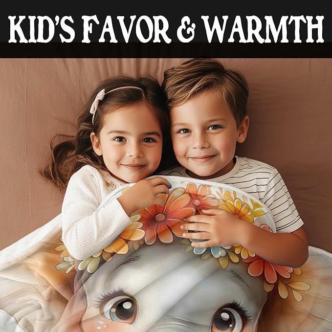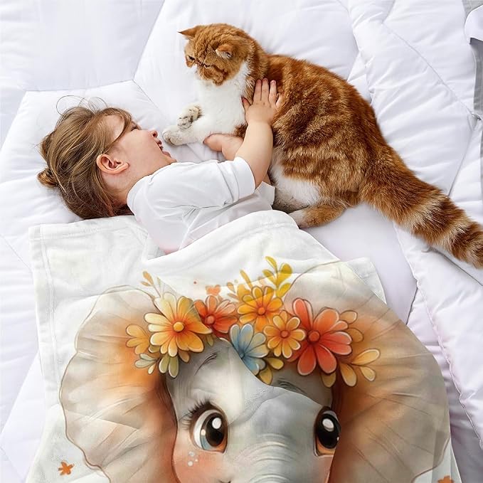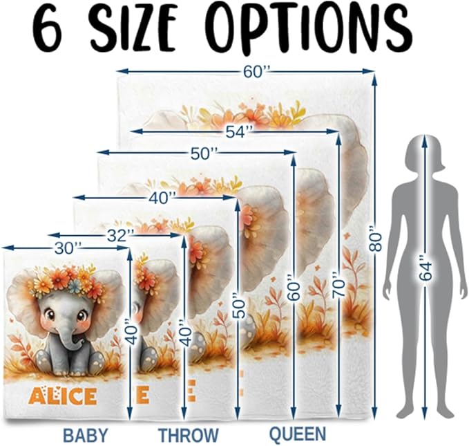 Custom Baby Girl Blanket with Name Personalized Cute Elephant Blanket Customized Soft Flannel Throw Blanket Gift for Birthday Baby Shower