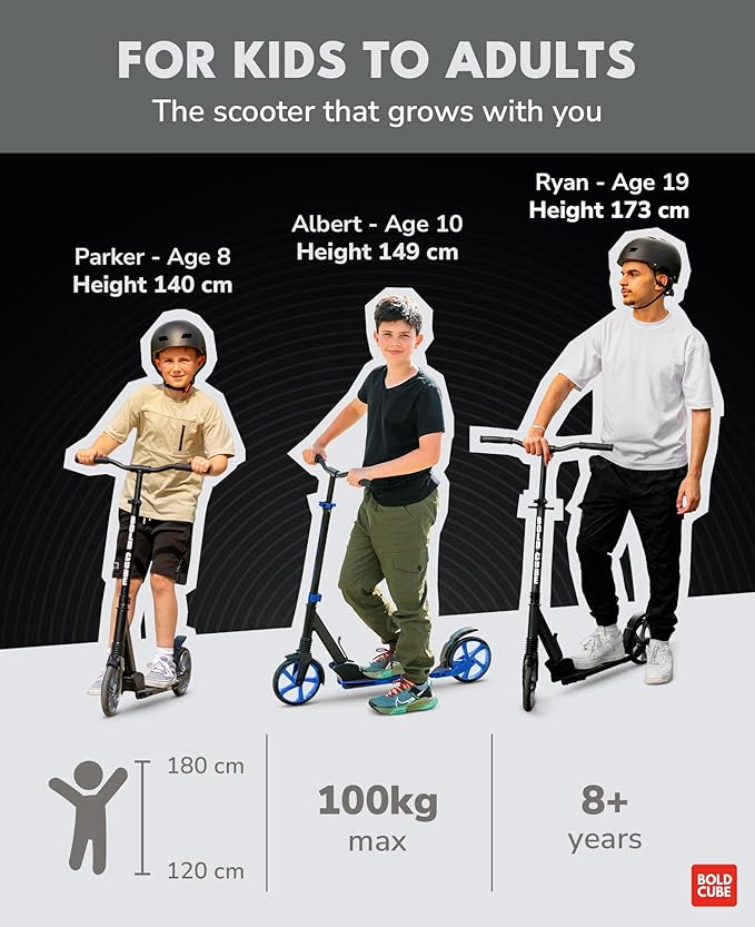 - FULLY REPLACEABLE PARTS - Designed to last, but easy to repair! Every BOLDCUBE kick scooters are designed to be 95% repairable by parts, so no scooter needs to go to landfill! This teens scooter for boys and girls come with a set of allen keys for scooter MOTs. Our friendly customer service team provide global email & video support whatever your question :)