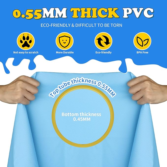 - 【MORE THICKNER MORE SAFETY】Cacsps splash pad is 0.55MM, which is thicker and more durable than other 0.25mm splash pads, Made from durable environmental and non-toxic PVC without BPA, so you can have fun without any worries! Tip: Pets need to trim their nails first when playing water mat.