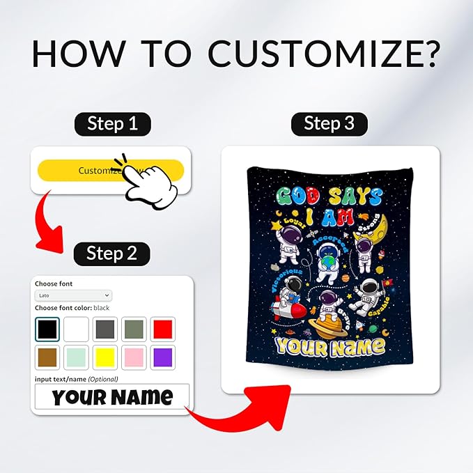 Personalized Planet Blanket, Kids Throw Blanket for Boys, Planet Gifts for Toddler Child, God Says I Am Blanket for Kids, Inspirational Gifts for Son, Soft Plush Throw Blankets for Couch, 30"x40"