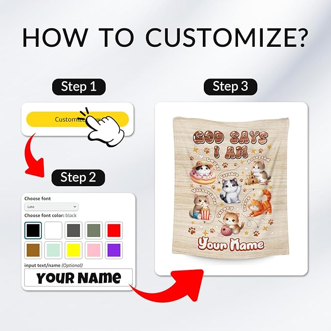- Personalized and Ideal for Cat Lovers: Click "Customize Now" to add your personal touch. Our personalized cat throw blankets can be personalized with names, or special messages, making them ideal for cat lovers