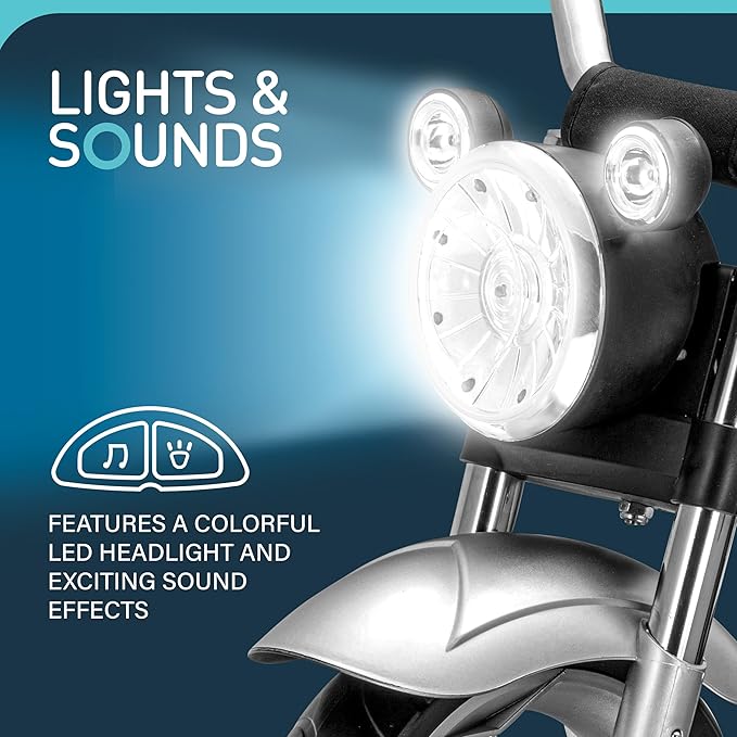 - Motorcycle-Inspired Design with Lights & Sounds: Features a colorful LED headlight and exciting sound effects, offering a fun, engaging riding experience that toddlers will love.