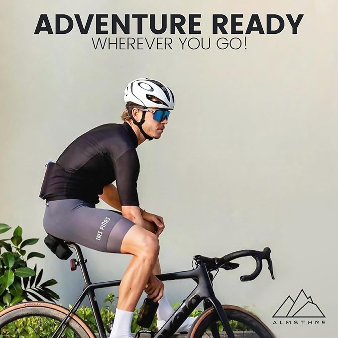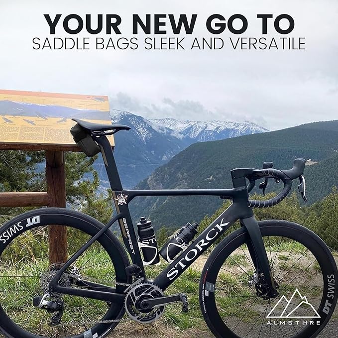- Minimalist Cycling Gear: The ALMSTHRE Compact bicycle Saddle Bag is perfect for riders who value simplicity and lightweight travel. Made from premium water-resistant ripstop material, it ensures your essentials stay secure and accessible on every ride.