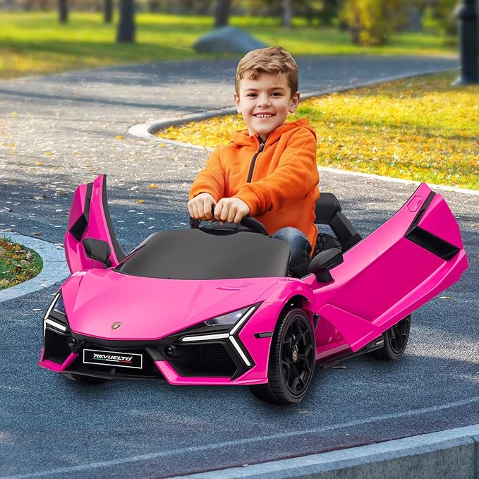 Winado 12V Ride on Car, Licensed Lamborghini Revuelto Electric Car for Toddlers W/Remote Control, Battery Car for Kids with Bluetooth, Hydraulic Doors, 3 Speeds, LED Lights, Music (Pink)