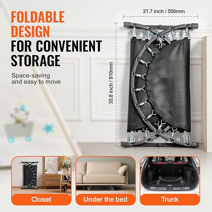 VEVOR 5FT Trampoline 50"/55"/56 * 35" for Indoor/Outdoor use for Toddlers, Foldable Mini Baby with Foam Handle, Recreational Birthday Gift