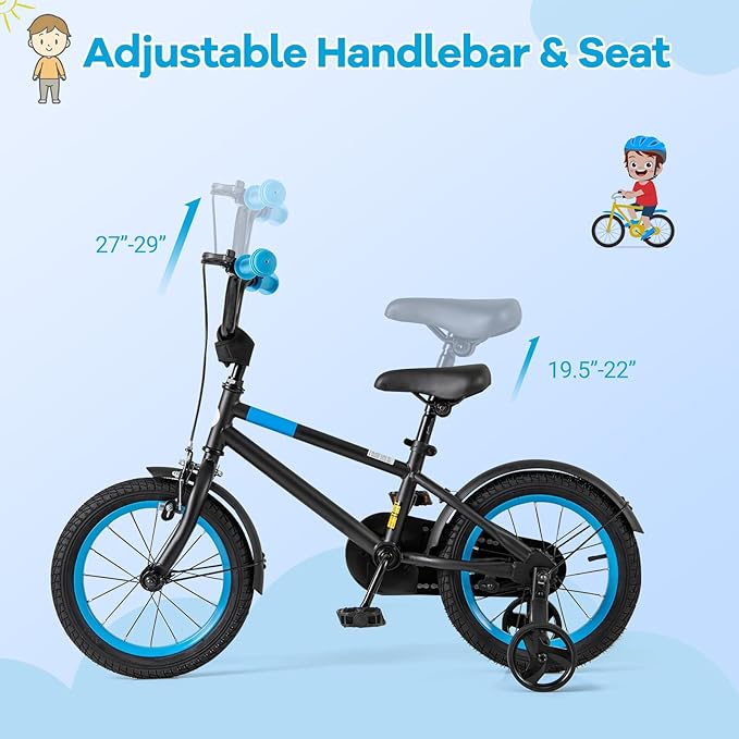 - [ Grow with Your Little One ]: The saddle is height adjustable while the handlebar can also be adjusted within 3", catering to riders with different ages. Our bikes for kids are equipped with detachable training wheels so that kids can learn to ride independently step by step. Note: Measure kid's INSEAM and compare with SADDLE HEIGHT to check if the rider can touch the ground.
