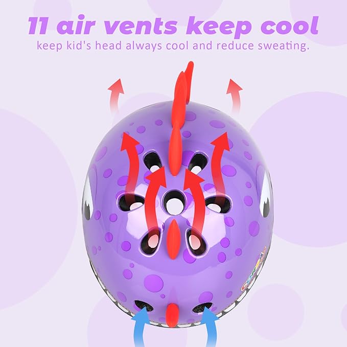 - 11 vents keep kid cool, even in hot summer. Super lightweight helmet for children to wear when they are cycling, skating, skateboarding or scooter