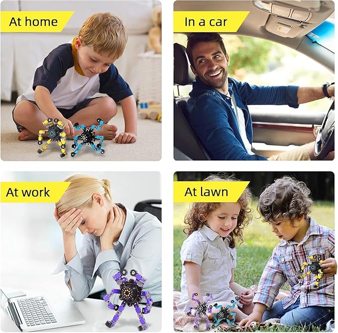 - Transform rotation: Fingertip mechanical deformation gyroscope has excellent centrifugal design, stable axis and high-speed rotation without shaking. Combined with the decompression chain, various shapes can be easily broken and turned into phone stands, robots, etc., providing rich fun for children.
