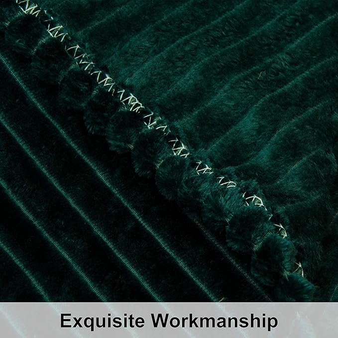 NTBAY Plush Flannel Twin Bed Blanket, 60x80 Inches Soft and Warm Lightweight Bed Blanket with Striped Texture for Couch, Sofa, All Seasons, Dark Green