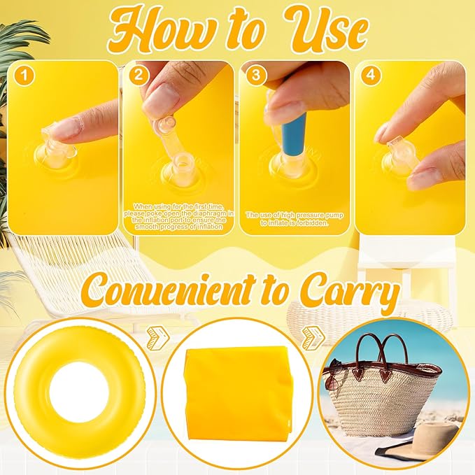 - Versatile Summer Accessories: the inflatable rings for pool serve as ideal summer themed accessories, whether indoors or outdoors; They will add more fun and excitement to your summer and pool parties; Also suitable for beach parties, birthday parties, summer vacations, graduations, bridal showers, bachelorettes and other themed parties