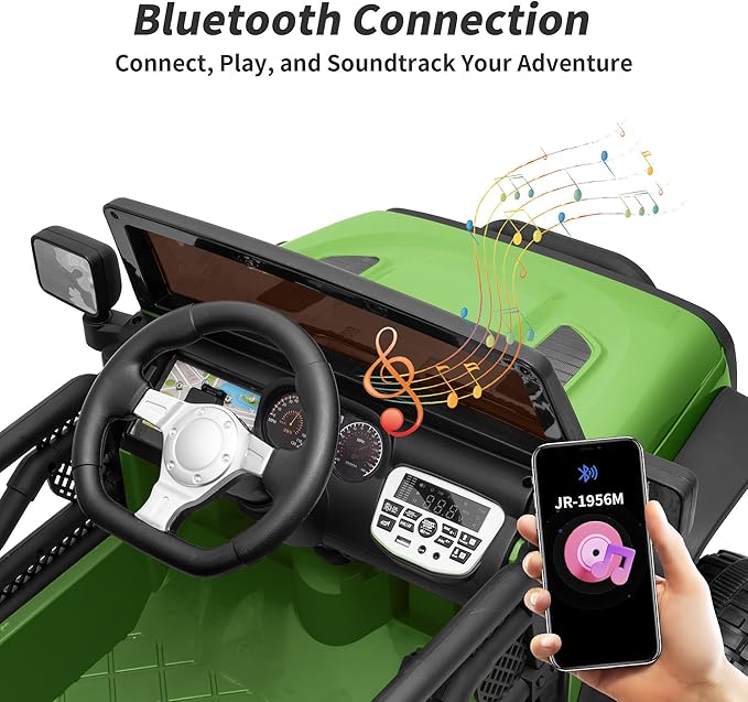 - Parent Remote Control: The parental remote control lets you intervene when needed, ensuring a safe and joyful shared driving experience. You can also connect your phone to the electric car for kids via Bluetooth and play your child's favorite music to make every ride more enjoyable.