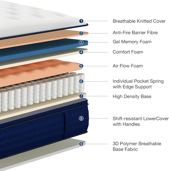 - SUPER QUIET : Our mattresses are designed with high-quality independent pocket springs and high-density memory foam, which work together to absorb the noise and vibration generated by tossing and turning during sleep, allowing you to sleep peacefully without being woken up by noise, creating a quiet, undisturbed sleep environment for you and your partner. Experience truly restful, rejuvenating sleep.