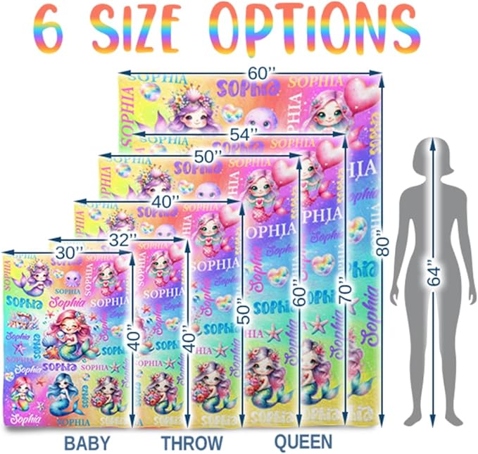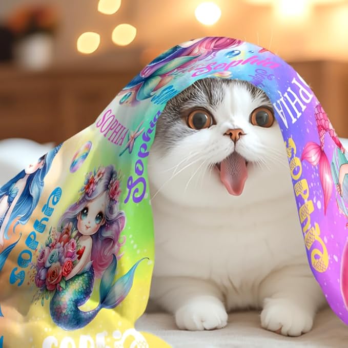 Custom Girl Blanket with Name Personalized Cute Mermaid Blanket for Newborn Customized Soft Flannel Throw Blanket Memorial Gift for Toddler on Birthday Baby Shower Christmas