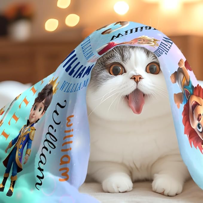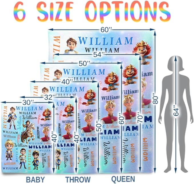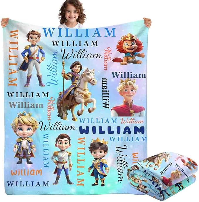 Custom Blanket with Name Personalized Prince Blanket Soft Flannel Throw Blanket for Toddler Kids Boys Birthday Baby Shower