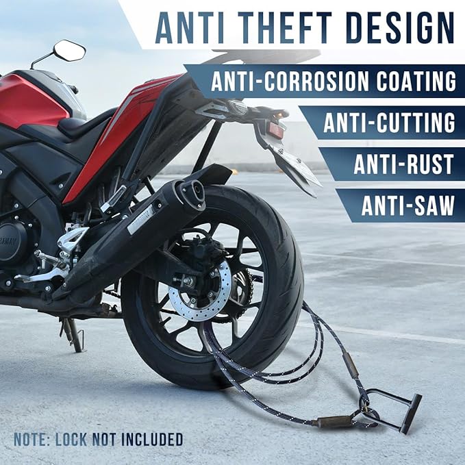 - Versatile Anti-Theft Protection – Secure motorcycles, e-bikes, ATVs, trailers, kayaks, jet skis, small boats, grills, lawnmowers, outdoor furniture, and more. Ideal for jobsite tools, generators, and industrial equipment.