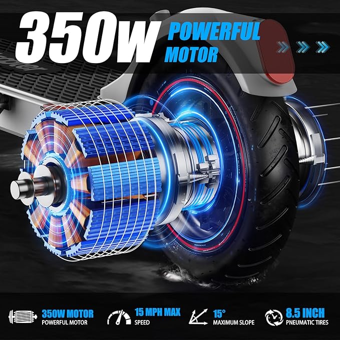 - 【Affordable & Efficient Electric Scooter for Adults】This electric scooter with a 350W motor reaches speeds of 18 mph, supporting riders up to 220 lbs. A perfect adult electric scooter for budget-friendly daily commutes