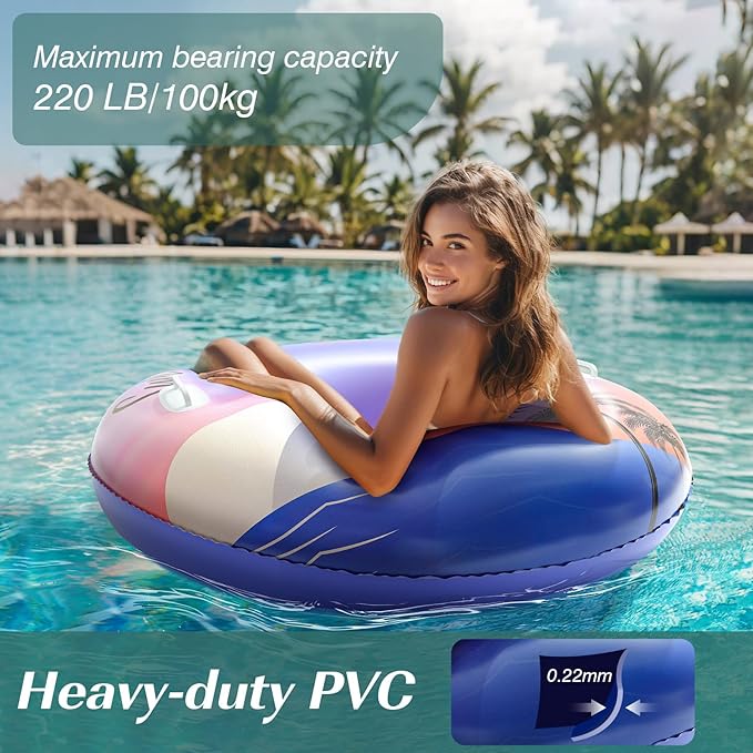 - Large Size & Double Handle: The inflatable outer diameter is 42.1 in/107 cm, and the inner diameter is 16.5 in/42 cm. A inflatable comfortable pool float or pool lounges when you need a rest. Double-handle design is ergonomic, making it easier to maintain stability and balance in water.
