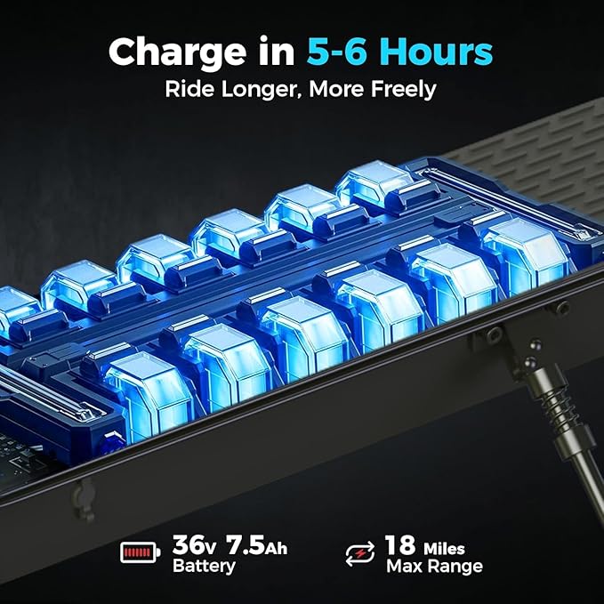 - 【Long-Lasting Battery & Extended Range】Equipped with a high-capacity battery, the escooter provides a maximum range of 18 miles per charge, ensuring you can ride without constant recharging. The efficient energy system balances power output for longer, uninterrupted rides, making it perfect for daily commutes and weekend trips