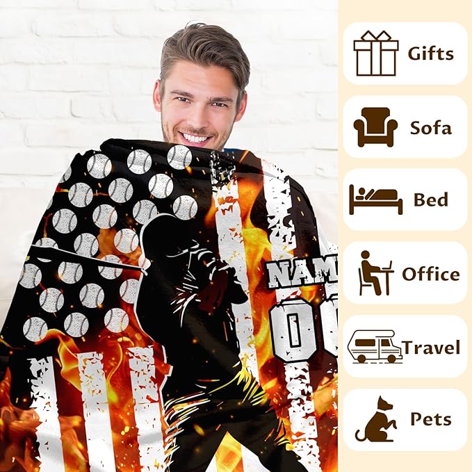 Personalized Name Blanket for Boys, Baseball Throw Blanket Gift for Kids Teens Baseball Lovers, 50x40 Inches Sport Blankets for Couch Sofa Bed
