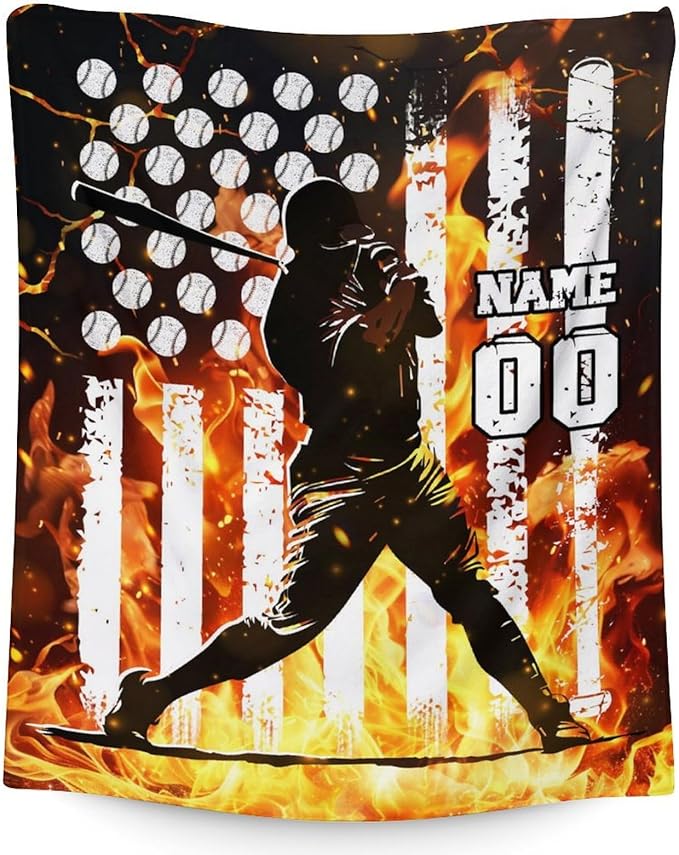Personalized Baseball Throw Blanket Gifts for Boys, Sport Blanket with Name for Baseball Lovers, Custom 30x40 Inches Lap Size Soft Blankets for Sofa Couch Chair