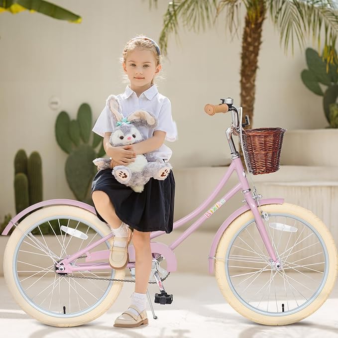 Retro Design Girls Bike with Basket and Coaster Brake for 3-13 Years Old Kids, 14 16 18 Inch Cruiser Bicycle for Toddlers with Training Wheels, 20 24 26 Inch with Kickstand, Multiple Colors