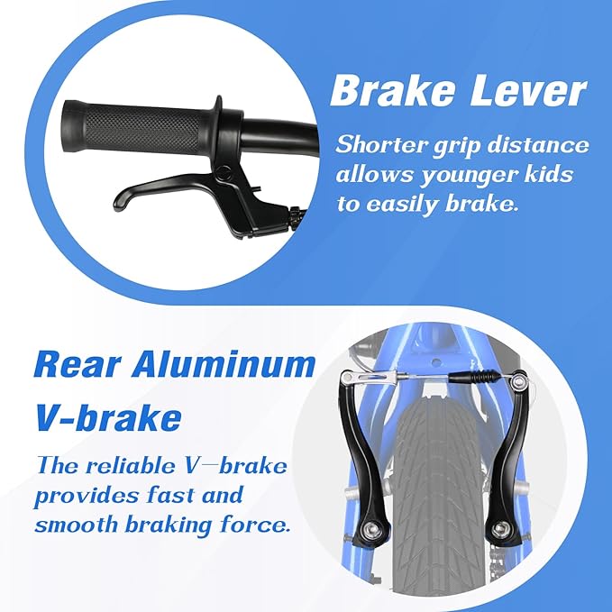 - 【Child-Safe Braking System】 Features an easy-to-use coaster brake and rear v-brake perfect for small hands, a half chain guard for safety, and wide tires for slip-resistant traction.