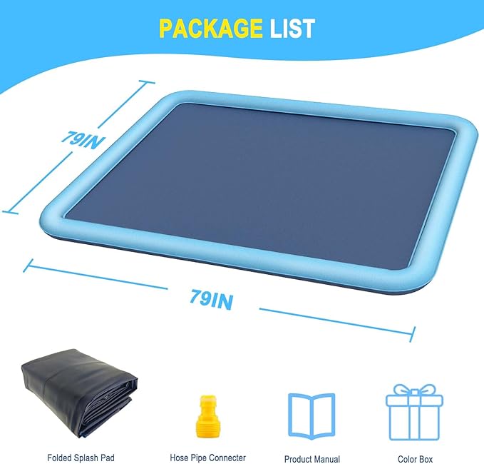 - 【Convenient Packaging & Maintenance】The splash pad is packaged in an attractive color box, complete with an instruction manual and patch kit, making setup and maintenance a simple task.